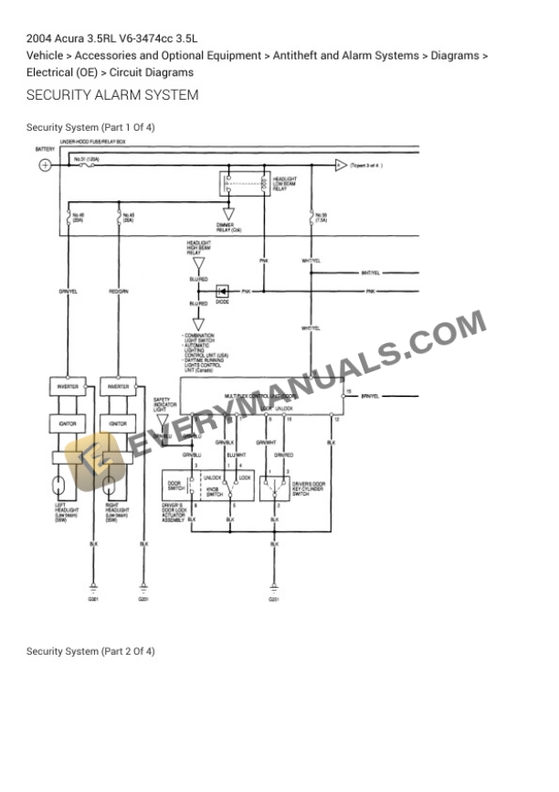Acura 3.5RL 2004 Electrical Diagrams V6-3474cc 3.5L