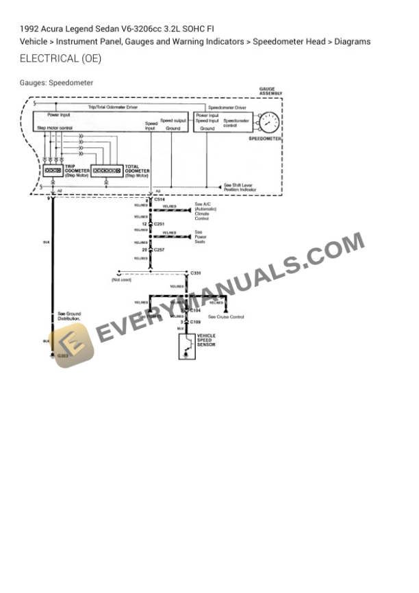 Acura Legend Sedan 1992 Electrical Diagrams V6-3206cc 3.2L SOHC FI