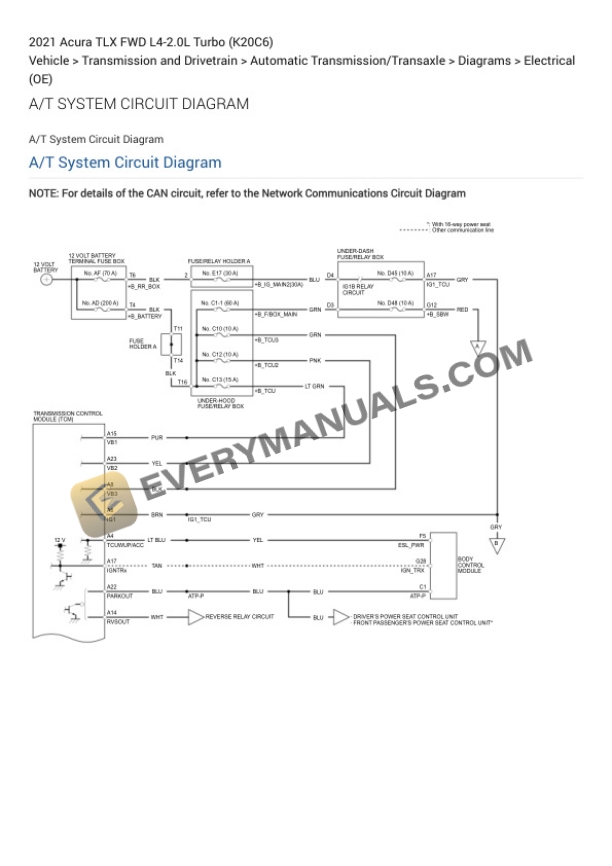 Acura TLX FWD 2021 Electrical Diagrams L4-2.0L Turbo (K20C6)