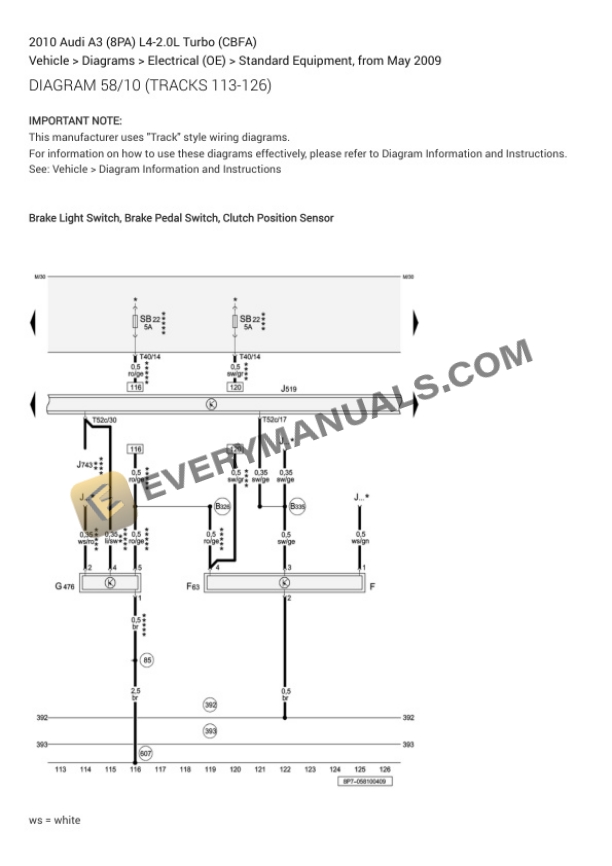 Audi A3 (8PA) 2010 Electrical Diagrams L4-2.0L Turbo (CBFA)