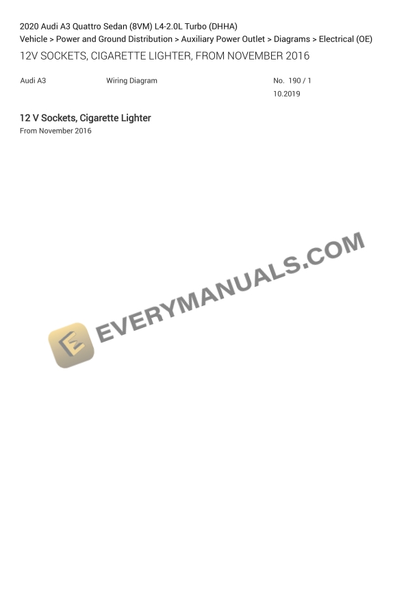 Audi A3 Quattro Sedan (8VM) 2020 Electrical Diagrams L4-2.0L Turbo (DHHA)