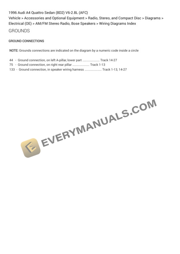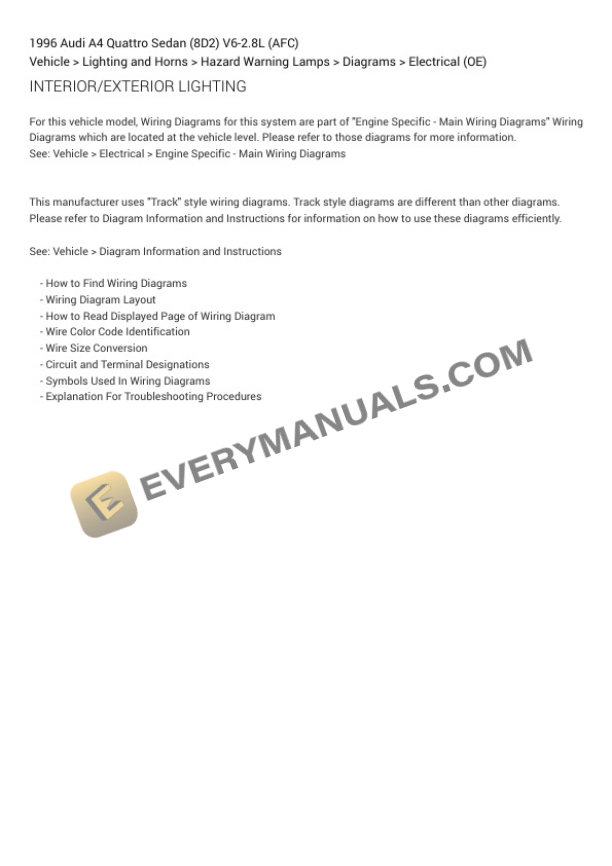 Audi A4 Quattro Sedan (8D2) 1996 Electrical Diagrams V6-2.8L (AFC)