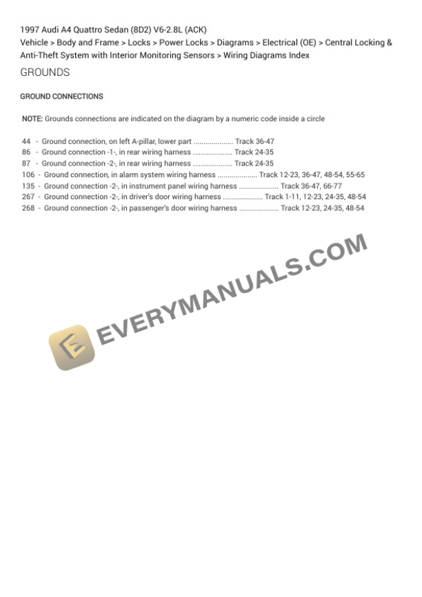 Audi A4 Quattro Sedan (8D2) 1997 Electrical Diagrams V6-2.8L (ACK)