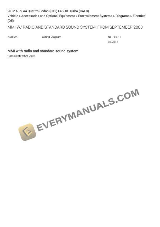 Audi A4 Quattro Sedan (8K2) 2012 Electrical Diagrams L4-2.0L Turbo (CAEB)