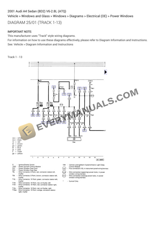 Audi A4 Sedan (8D2) 2001 Electrical Diagrams V6-2.8L (ATQ)
