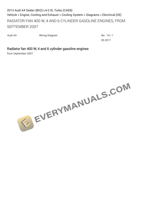 - 133. Radiator Fan 400 W, 4 and 6 Cylinder Gasoline Engines, from September 2007