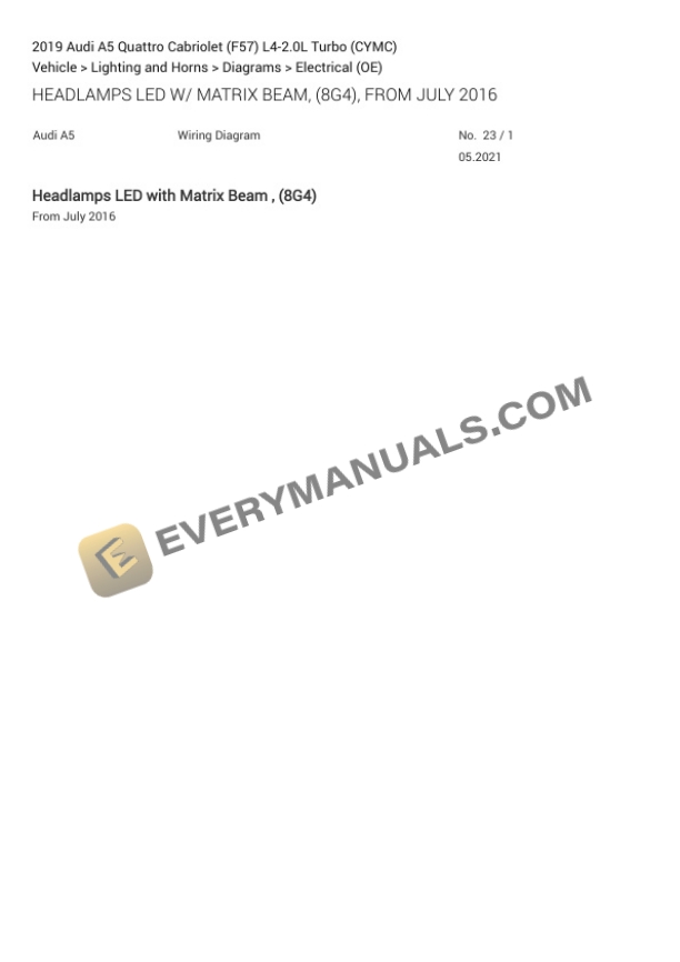 Audi A5 Quattro Cabriolet (F57) 2019 Electrical Diagrams L4-2.0L Turbo (CYMC)