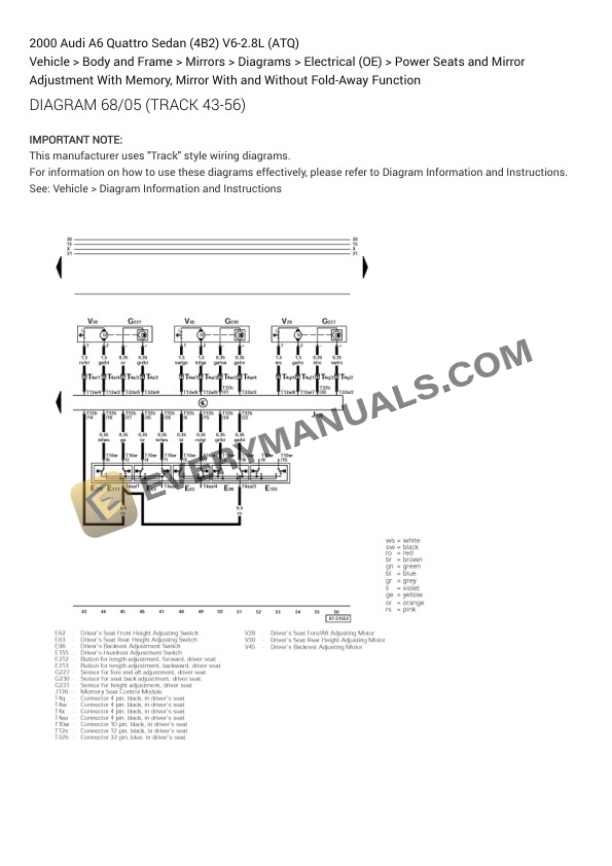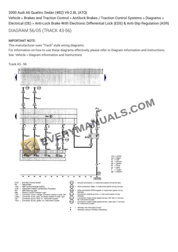 Audi A6 Quattro Sedan (4B2) 2000 Electrical Diagrams V6-2.8L (ATQ)