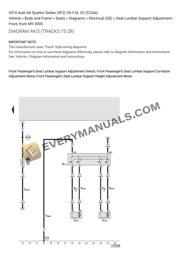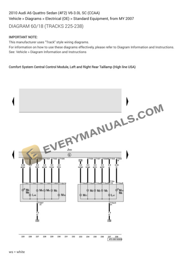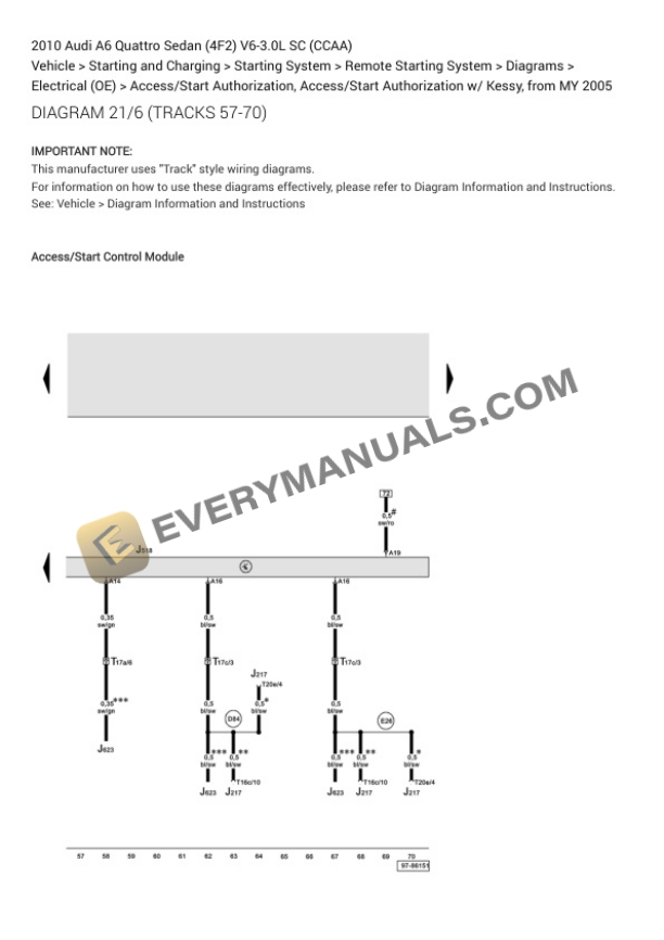 Audi A6 Quattro Sedan (4F2) 2010 Electrical Diagrams V6-3.0L SC (CCAA)