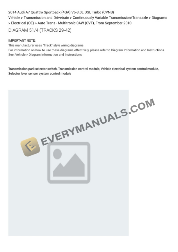 Audi A7 Quattro Sportback (4GA) 2014 Electrical Diagrams V6-3.0L DSL Turbo (CPNB)