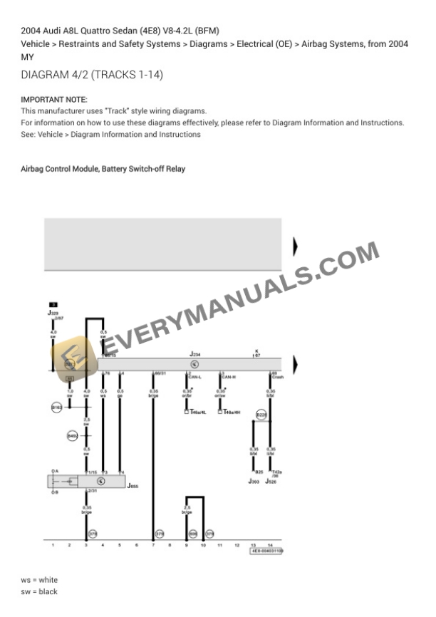 Audi A8L Quattro Sedan (4E8) 2004 Electrical Diagrams V8-4.2L (BFM)