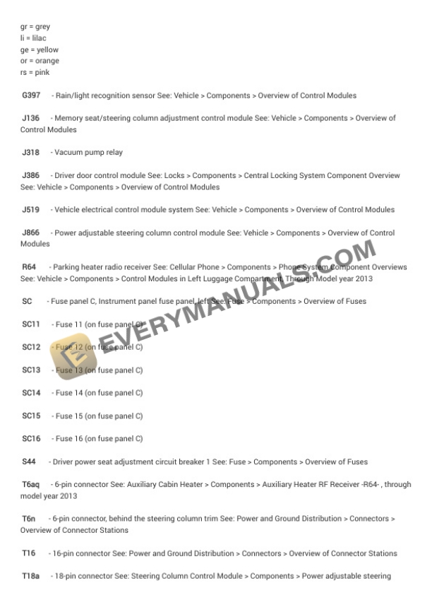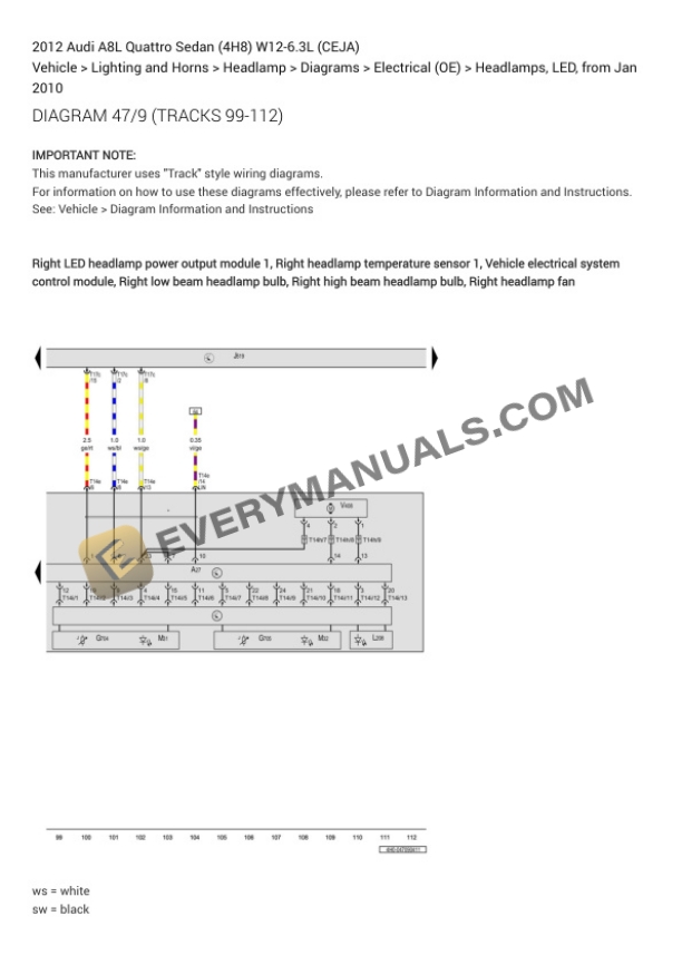 Audi A8L Quattro Sedan (4H8) 2012 Electrical Diagrams W12-6.3L (CEJA)