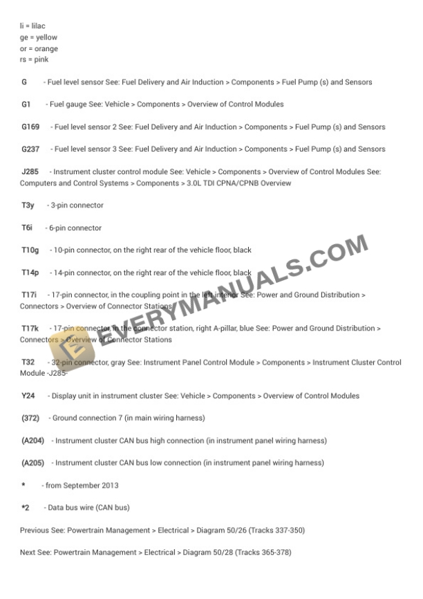 Audi A8L Quattro Sedan (4H8) 2013 Electrical Diagrams V6-3.0L SC (CTUB)