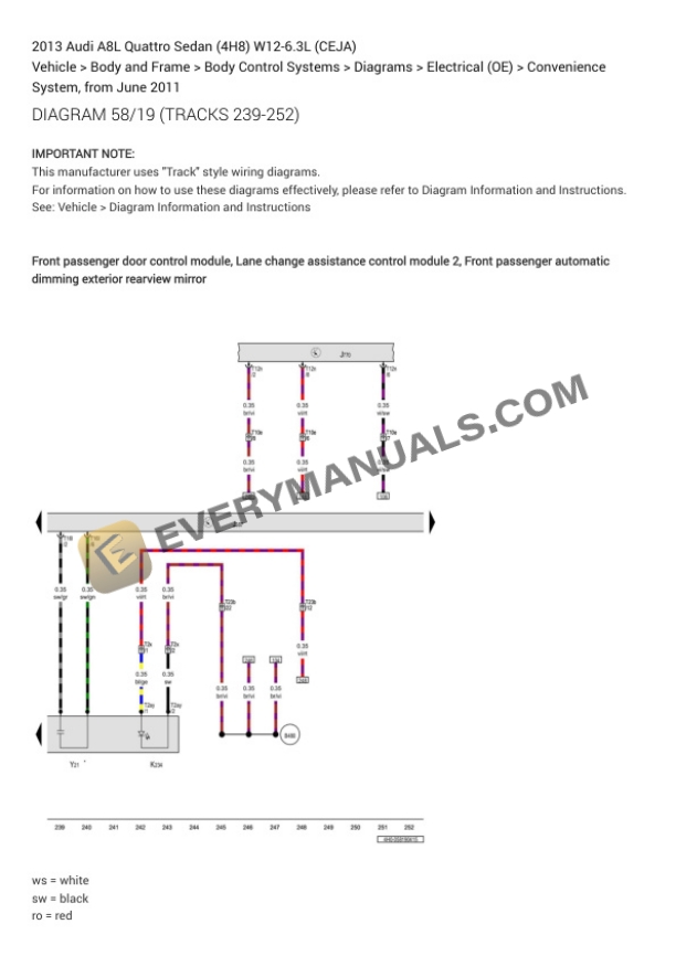 Audi A8L Quattro Sedan (4H8) 2013 Electrical Diagrams W12-6.3L (CEJA)