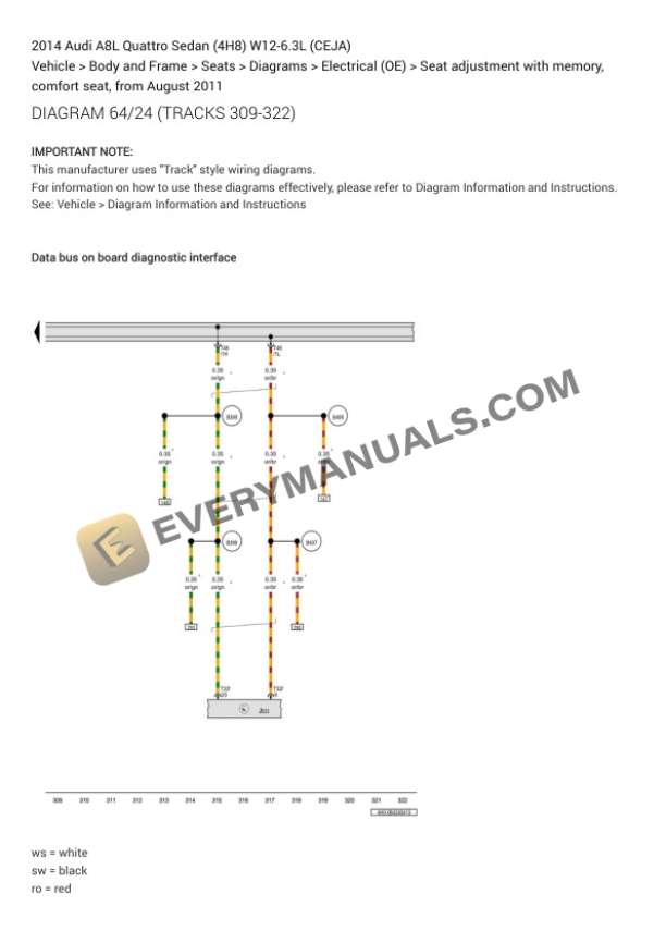 Audi A8L Quattro Sedan (4H8) 2014 Electrical Diagrams W12-6.3L (CEJA)
