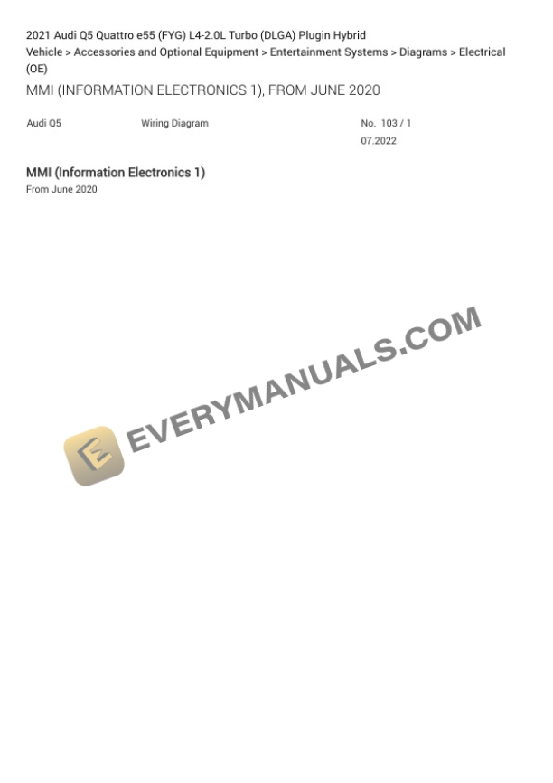 Audi Q5 Quattro e55 (FYG) 2021 Electrical Diagrams L4-2.0L Turbo (DLGA) Plugin Hybrid