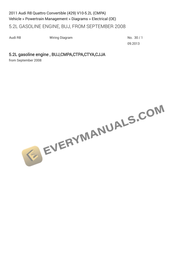 Audi R8 Quattro Convertible (429) 2011 Electrical Diagrams V10-5.2L (CMPA)