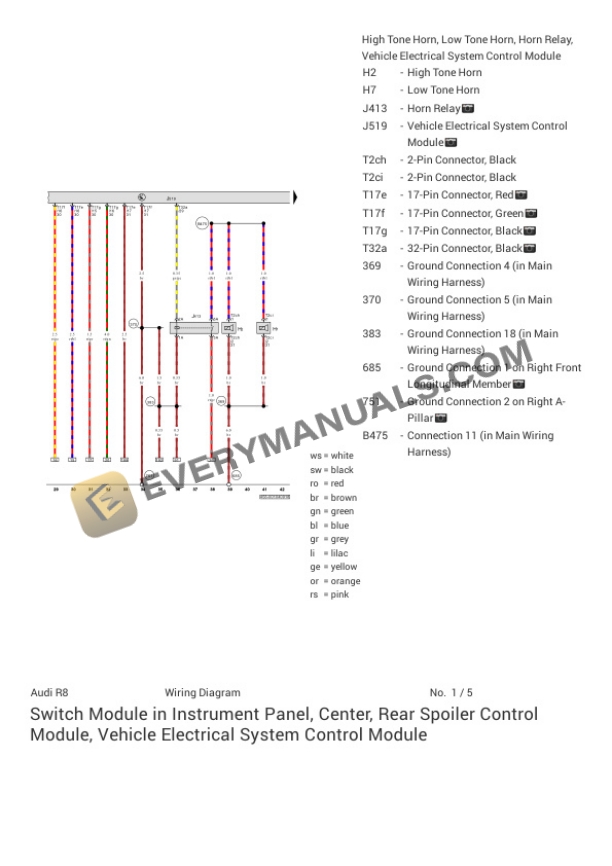 Audi R8 Quattro Coupe (4S3) 2018 Electrical Diagrams V10-5.2L (DKAB)