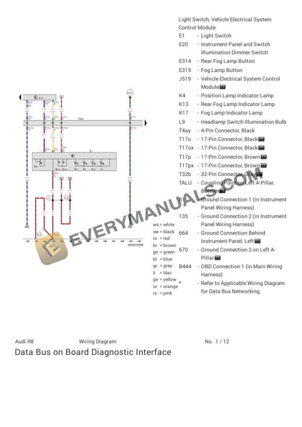 Audi R8 Quattro Spyder (4SR) 2021 Electrical Diagrams V10-5.2L (DKAB)