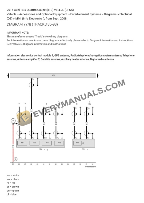 Audi RS5 Quattro Coupe (8T3) 2015 Electrical Diagrams V8-4.2L (CFSA)