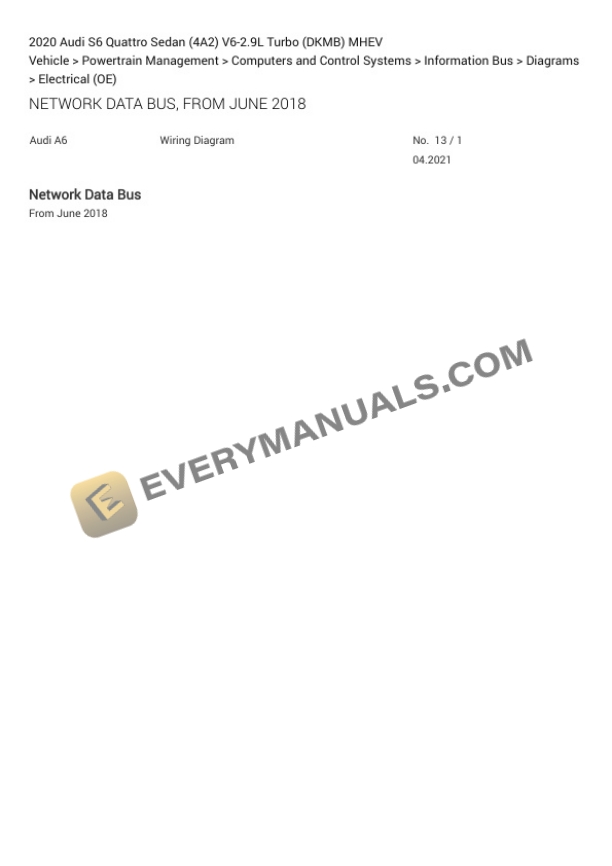 Audi S6 Quattro Sedan (4A2) 2020 Electrical Diagrams V6-2.9L Turbo (DKMB) MHEV