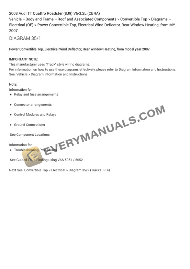 Audi TT Quattro Roadster (8J9) 2008 Electrical Diagrams V6-3.2L (CBRA)