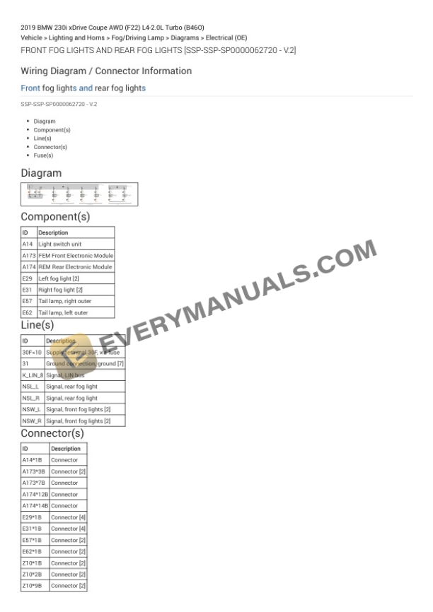 BMW 230i xDrive Coupe AWD (F22) 2019 Electrical Diagrams L4-2.0L Turbo (B46O)