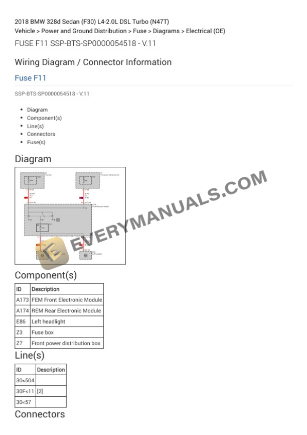 BMW 328d Sedan (F30) 2018 Electrical Diagrams L4-2.0L DSL Turbo (N47T)