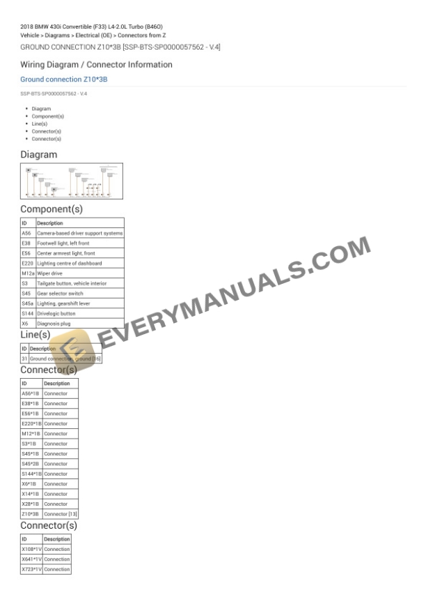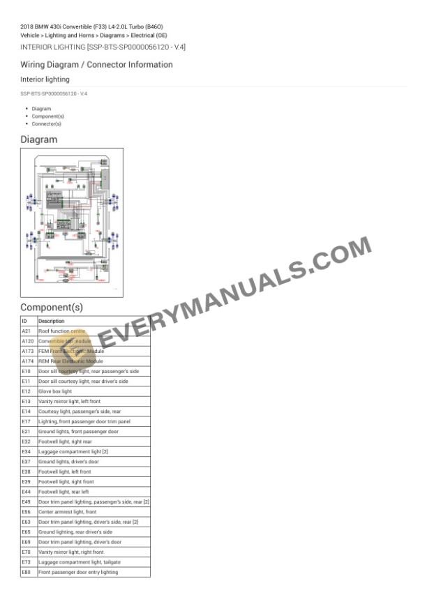 BMW 430i Convertible (F33) 2018 Electrical Diagrams L4-2.0L Turbo (B46O)