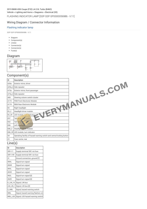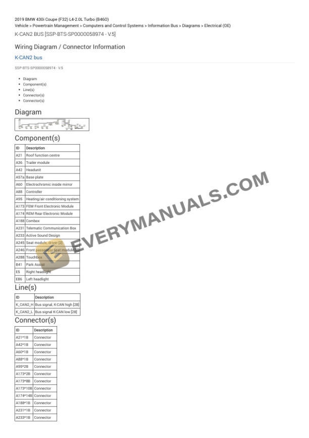 BMW 430i Coupe (F32) 2019 Electrical Diagrams L4-2.0L Turbo (B46O)