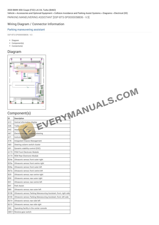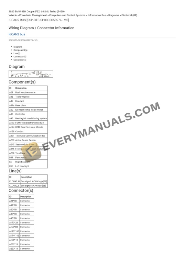 BMW 430i Coupe (F32) 2020 Electrical Diagrams L4-2.0L Turbo (B46O)