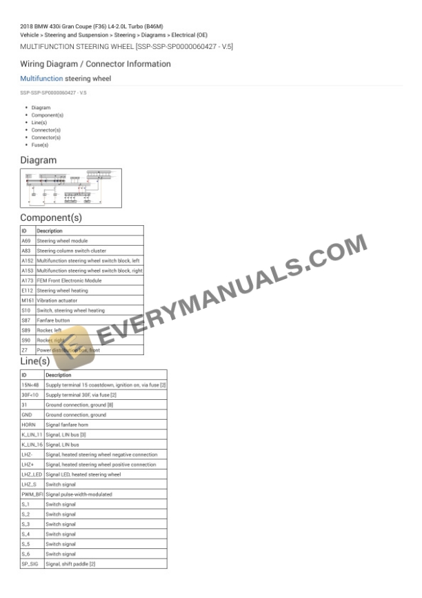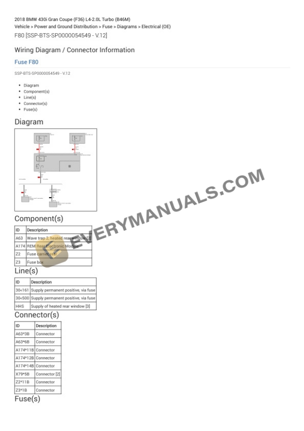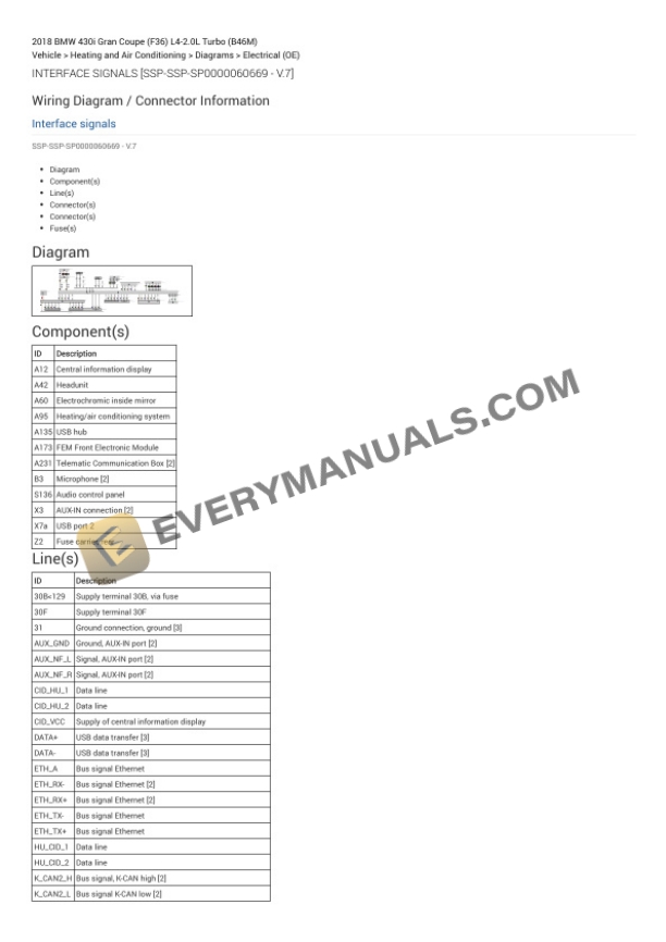 BMW 430i Gran Coupe (F36) 2018 Electrical Diagrams L4-2.0L Turbo (B46M)