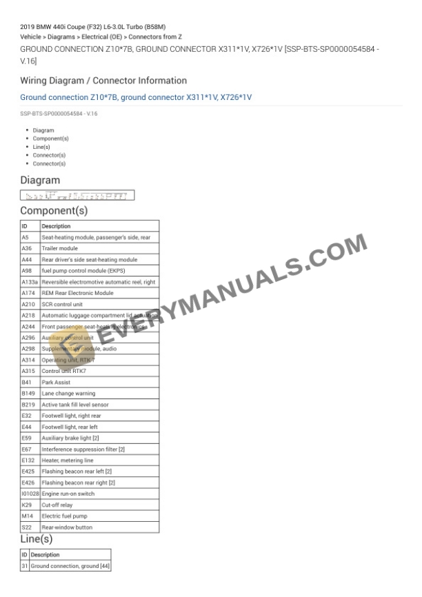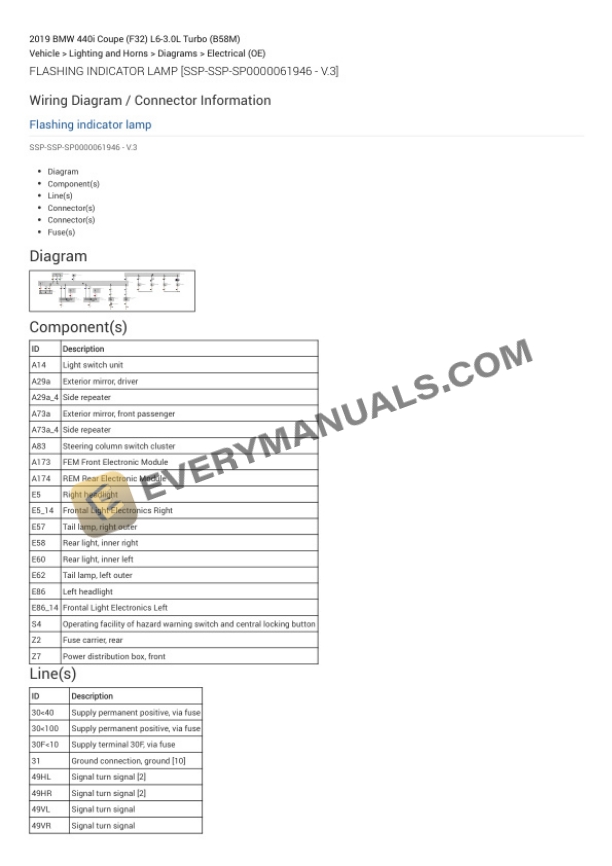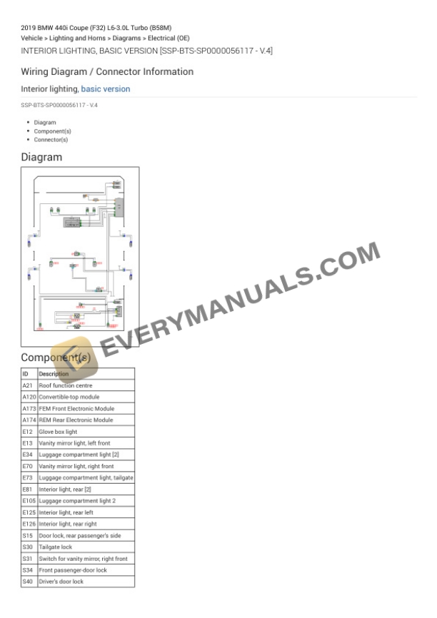 BMW 440i Coupe (F32) 2019 Electrical Diagrams L6-3.0L Turbo (B58M)