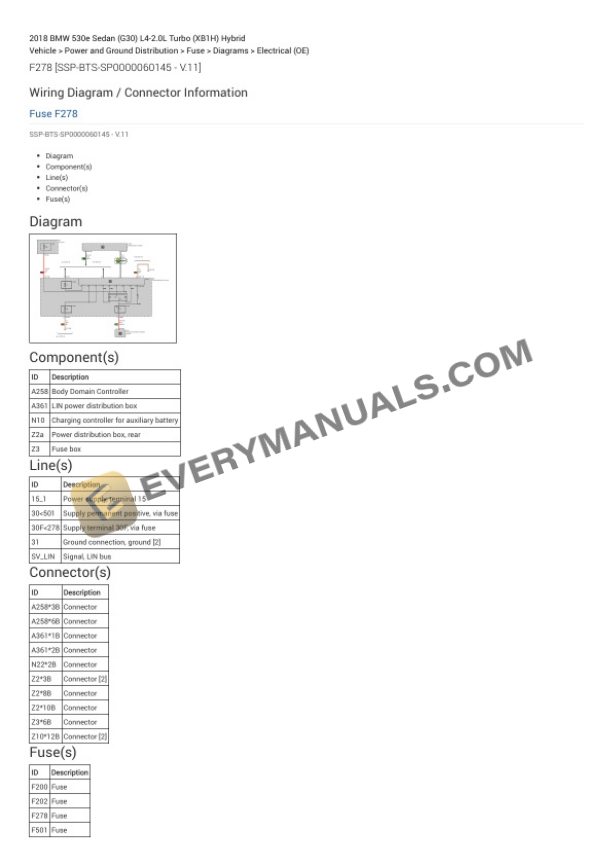 BMW 530e Sedan (G30) 2018 Electrical Diagrams L4-2.0L Turbo (XB1H) Hybrid