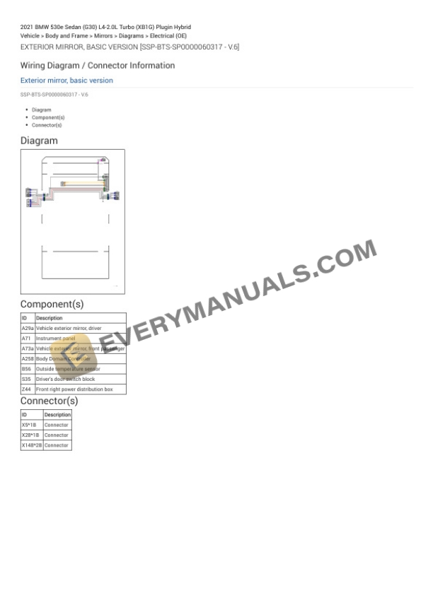 BMW 530e Sedan (G30) 2021 Electrical Diagrams L4-2.0L Turbo (XB1G) Plugin Hybrid