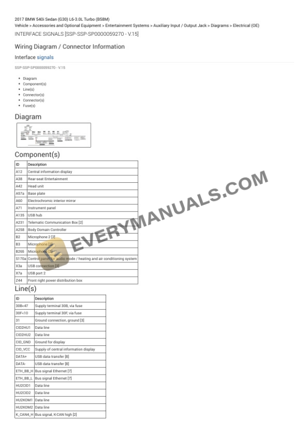 BMW 540i Sedan (G30) 2017 Electrical Diagrams L6-3.0L Turbo (B58M)