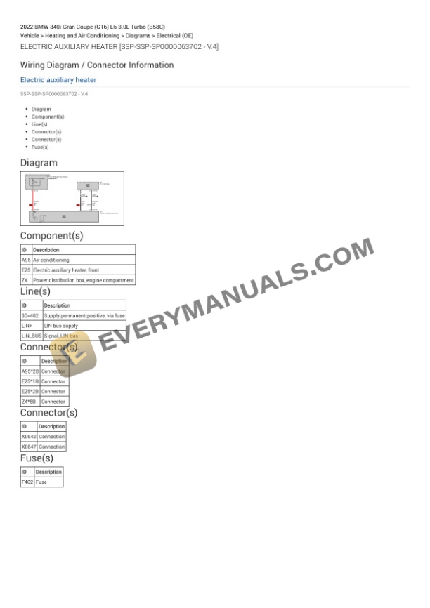 BMW 840i Gran Coupe (G16) 2022 Electrical Diagrams L6-3.0L Turbo (B58C)