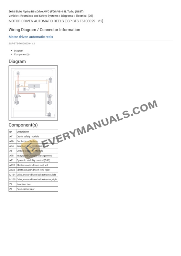BMW Alpina B6 xDrive AWD (F06) 2018 Electrical Diagrams V8-4.4L Turbo (N63T)