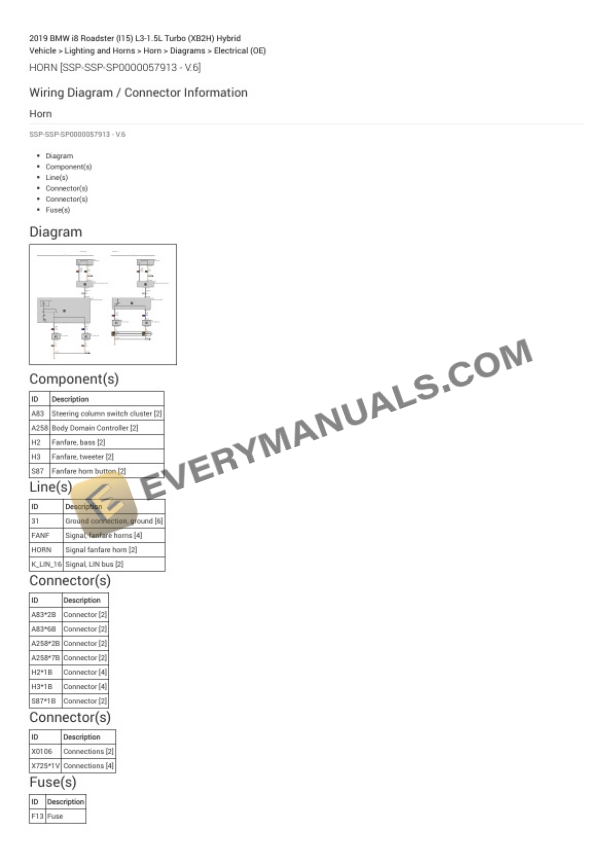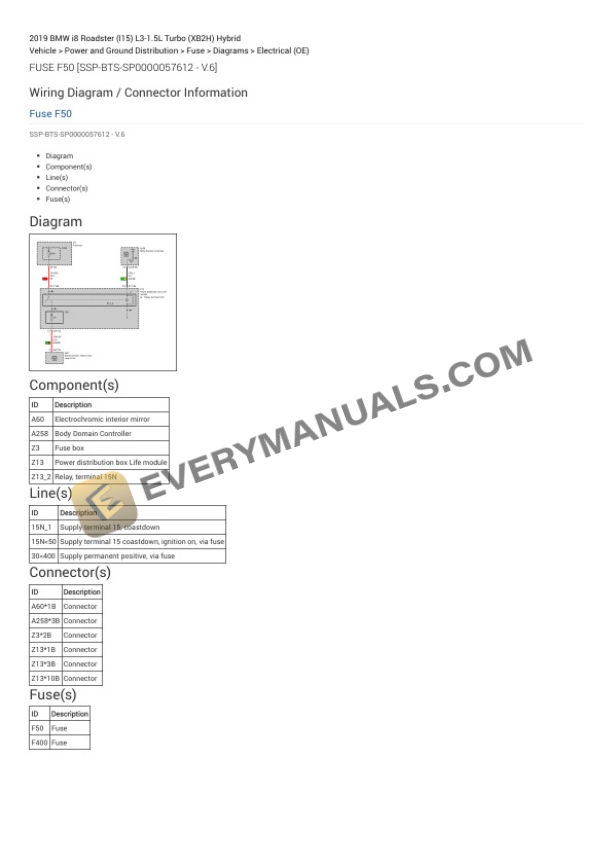 BMW i8 Roadster (I15) 2019 Electrical Diagrams L3-1.5L Turbo (XB2H) Hybrid