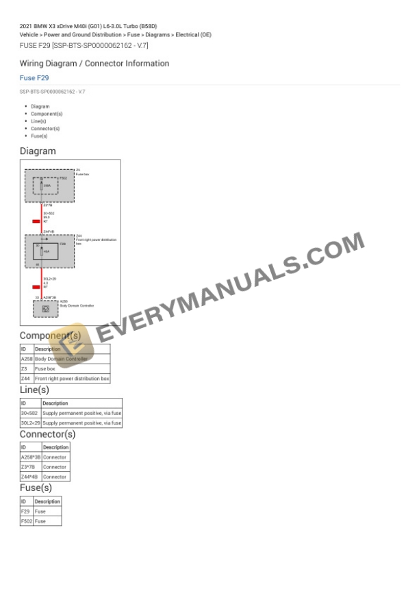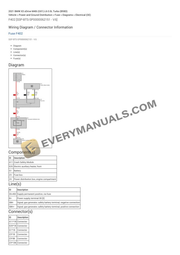 BMW X3 xDrive M40i (G01) 2021 Electrical Diagrams L6-3.0L Turbo (B58D)