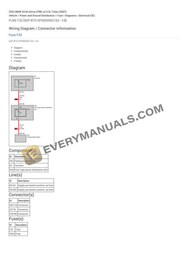 BMW X4 M xDrive (F98) 2022 Electrical Diagrams L6-3.0L Turbo (S58T)