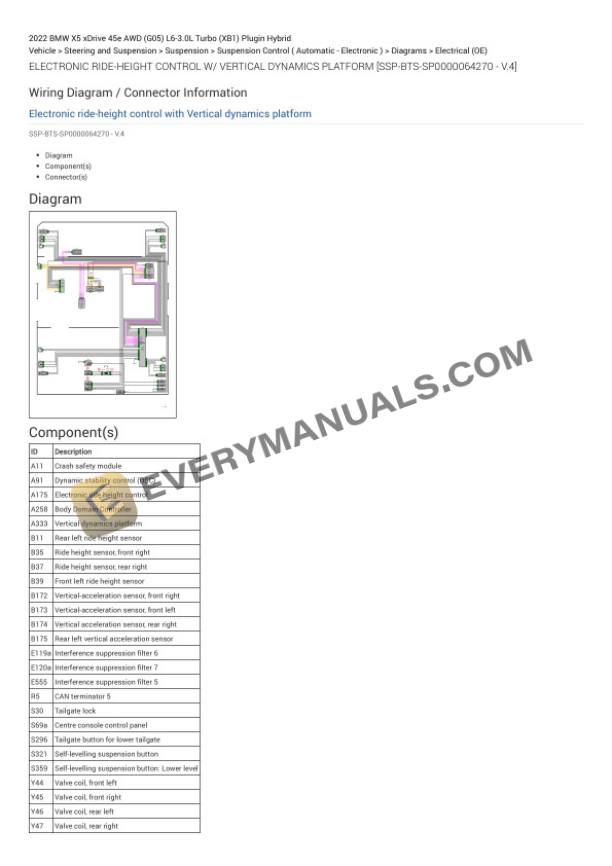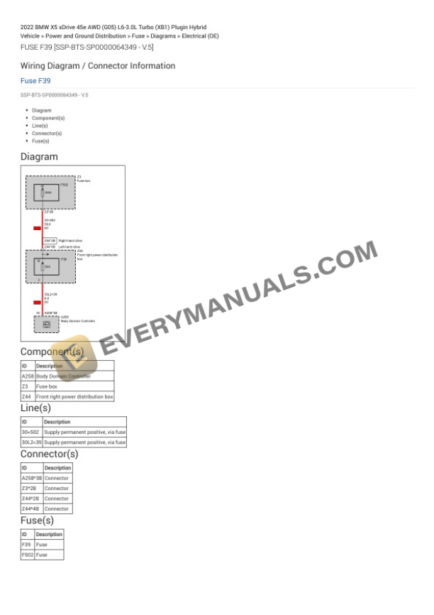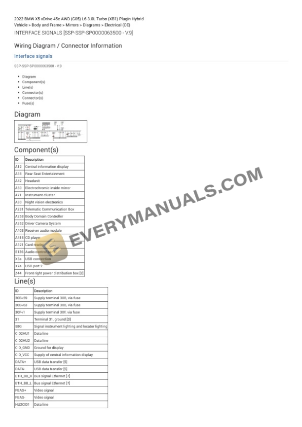 BMW X5 xDrive 45e AWD (G05) 2022 Electrical Diagrams L6-3.0L Turbo (XB1) Plugin Hybrid