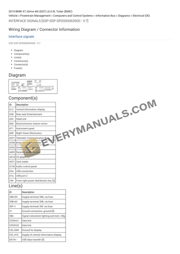 BMW X7 xDrive 40i (G07) 2019 Electrical Diagrams L6-3.0L Turbo (B58C)