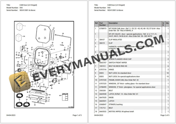 Serial Number: 501111999 & Below, 502412001 & Above, 511111001 & Above