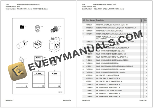 - Maintenance Items (MODEL 610)_610