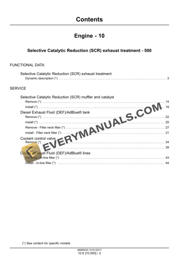 - 2.9. Selective Catalytic Reduction (SCR) exhaust treatment 500