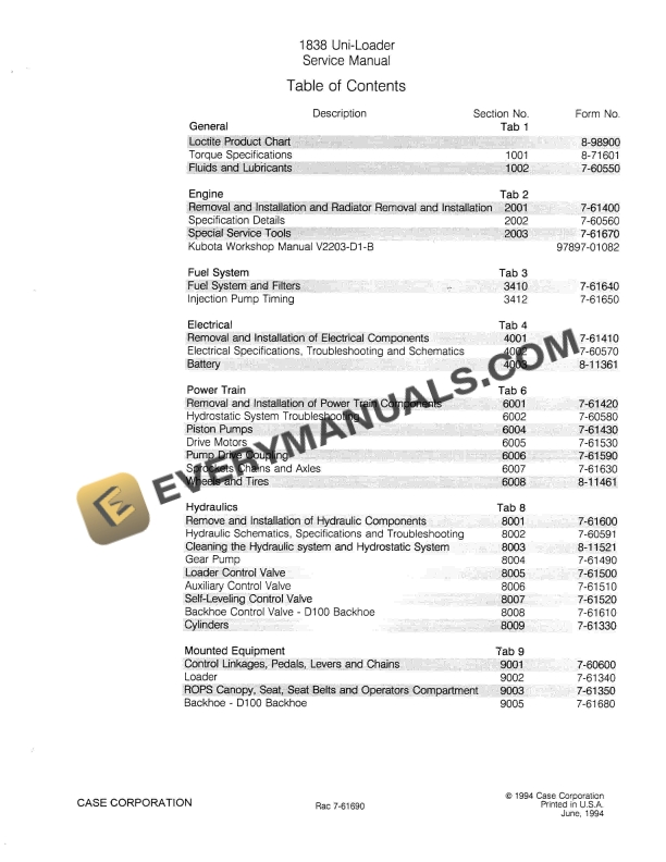 Case 1838 Uni Loader Service Manual 7-61690 PDF