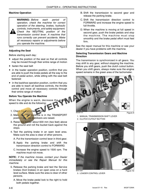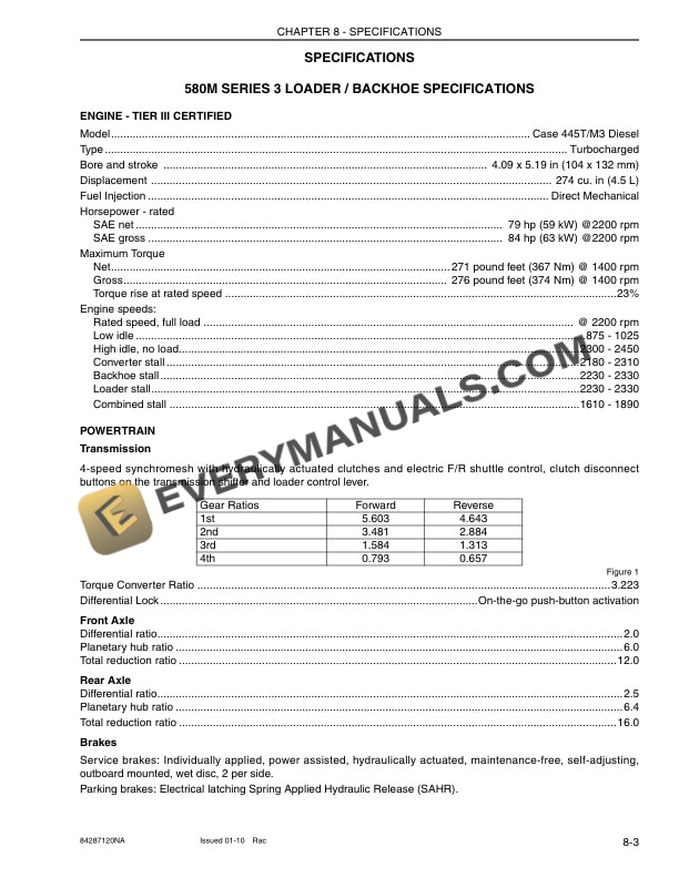 Case 580M, 580 SUPER M, 580 SUPER M+, 590 SUPER M, 590 SUPER M+ Series 3 Loader Backhoe Operator Manual 84287120 PDF
