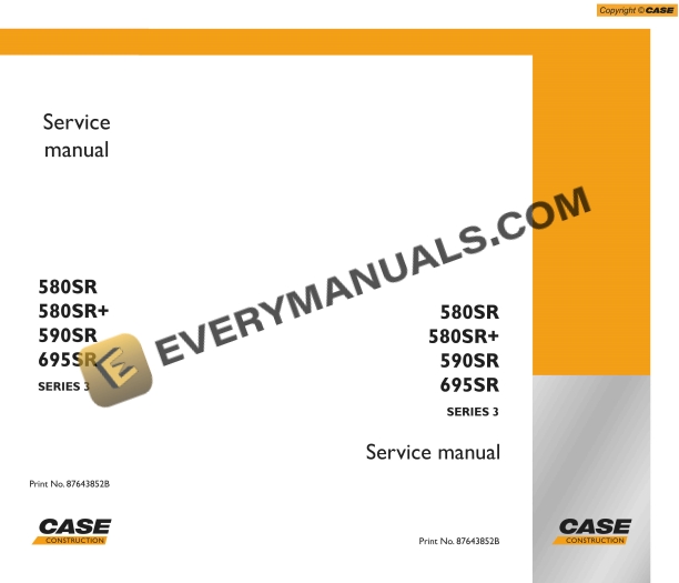 Case 580SR, 580SR+, 590SR, 695SR Series 3 Backhoe Loader Service Manual 87643852B PDF