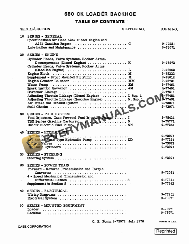 Case 680CK Loader Backhoe Service Manual 9-73072 PDF